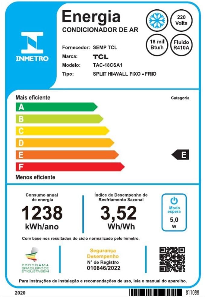 Review: Referente ao produto em si, faltam algumas informações na apresentação/anuncio do produto, como por exemplo:Modelo:Unidade Interna TAC-12CSA1  /  Unidade Externa TAC-12CSA1Consumo de:Wh/Wh 3,85 / kWh/ano 816; sendo considerado na faixa de classificação E.Entrega: Chegou antes do prazo, os meninos que entregaram foram educados e me enviaram msg antes perguntando se tinha alguém em casa para receber o produto, o que na minha percepção é muito importante.Ainda não efetuei a instalação, porém tenho outro do mesmo modelo que já está atuante há 1 ano. Sem problemas  de funcionamento, baixo ruído, fácil de manusear, gela o ambiente rapidinho e tem um visual agradável.Assim que for instalado e começar a utiliza-lo, volto para fazer mais comentários.