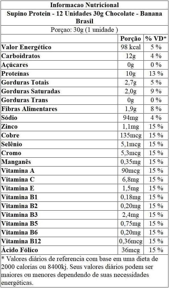 Banana Brasil Display Barra De Proteína Supino Protein Chocolate – 12 Unidades De 30G