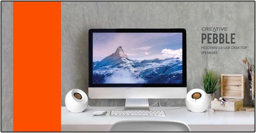 PEQUENO, MAS PODEROSO: Com seus radiadores passivos integrados e uma combinação impressionante de RMS de 4,4 W, o pequeno Creative Pebble é capaz de fornecer áudio balanceado com profundidade, imersão e detalhes cristalinos. Basta conectar seu dispositivo por meio da entrada de 3,5 mm e ficar pronto para ser surpreendido