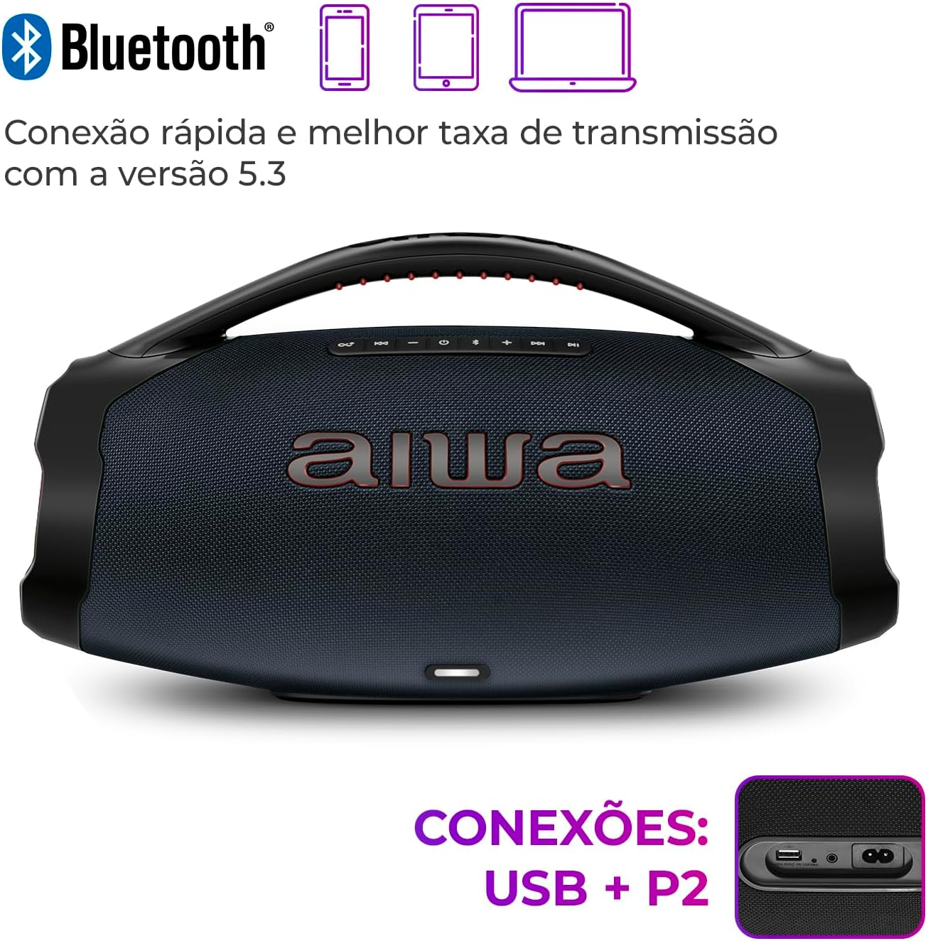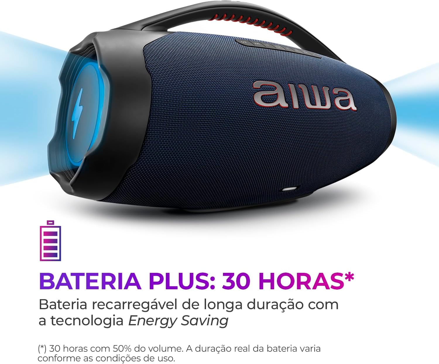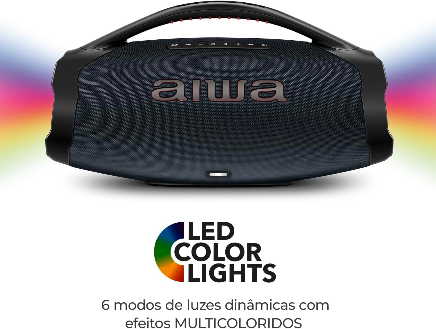 Caixa de Som Boombox Plus AIWA BBS-01-LBL 200W BT 30H IP66 USB RGB