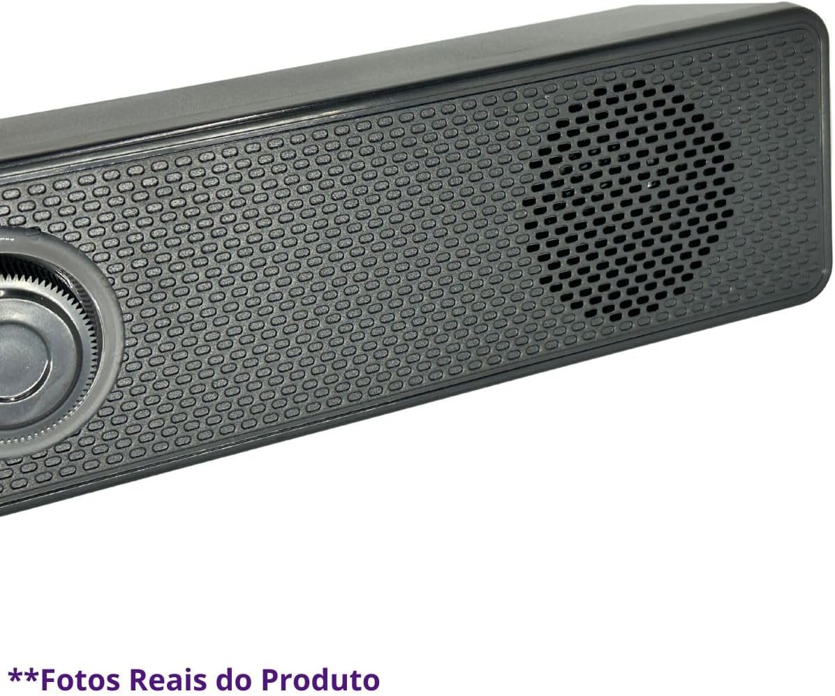 POTÊNCIA DE 6W E ALTO-FALANTES DE 52MM Surpreenda-se com o som potente e equilibrado dessa mini soundbar. Alto-falantes duplos garantem graves presentes e agudos claros.