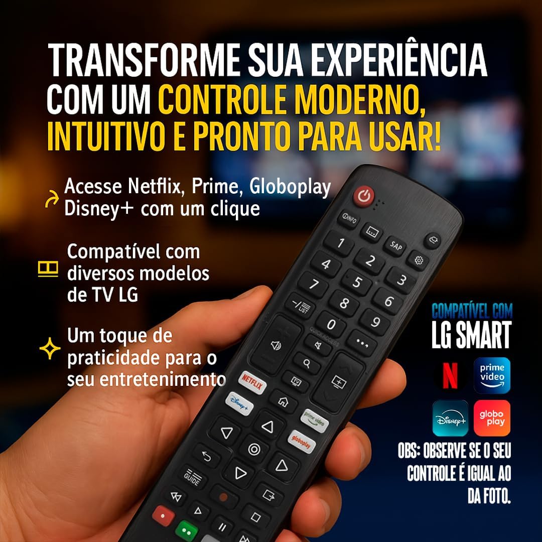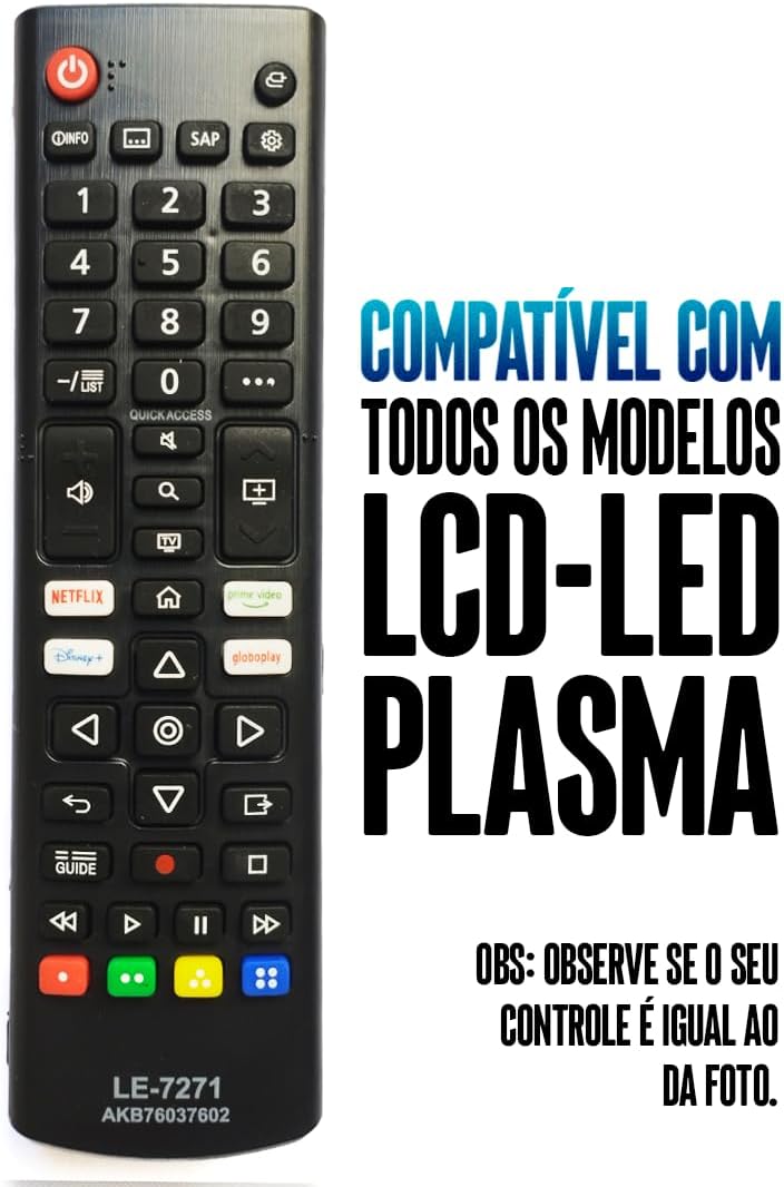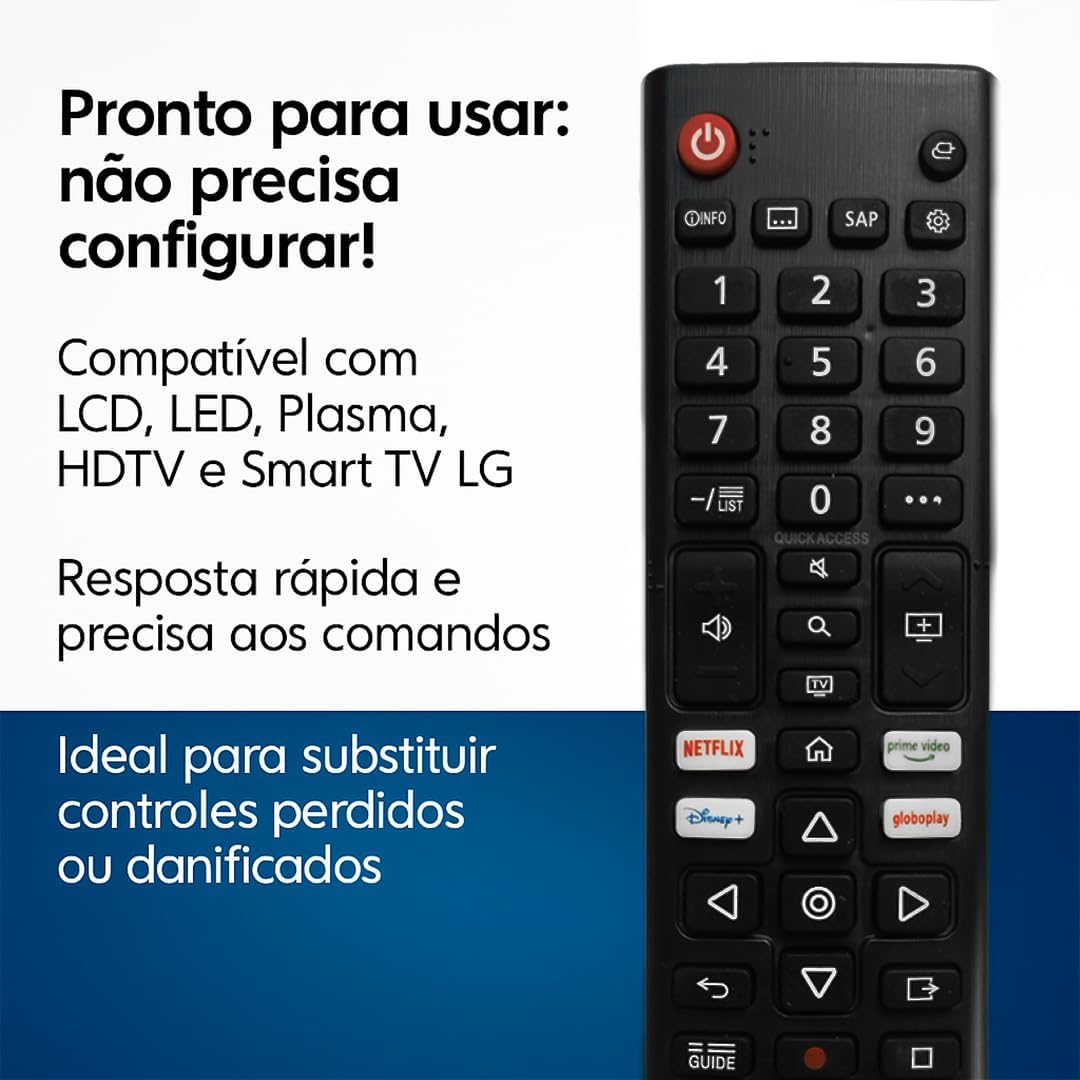 Controle Remoto Compatível com LG Universal Televisão LCD LED HDTV Plasma Smart Com Teclas Netflix, Prime, Disney+, Globoplay TV Digital Futebol