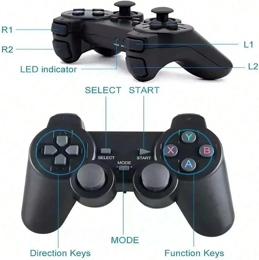 Principais Benefícios 🎯 40.000 jogos clássicos pré-instalados 🕹️ 2 controles sem fio 2.4G (resposta rápida e sem atraso) 📺 Saída HDMI 4K HD – imagem nítida e estável 💾 128GB de memória – grande variedade de jogos ⚡ Plug & Play – fácil instalação, sem downloads