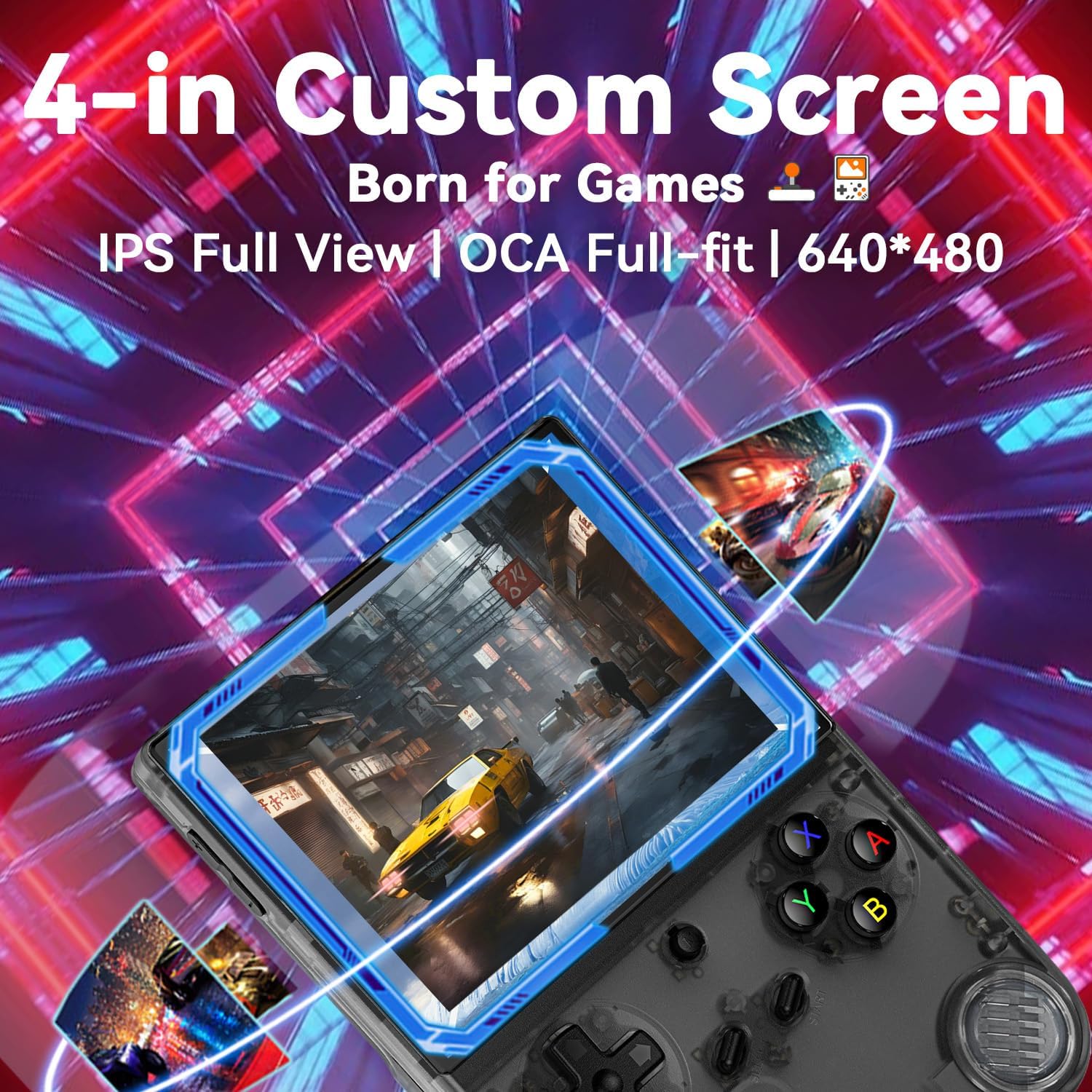 FINGEREVO RG40XXV Handheld Game Console 4.0-in 640 * 480 IPS OCA Screen 3200mAh 64Bit System RG 40XXV Black Transparent