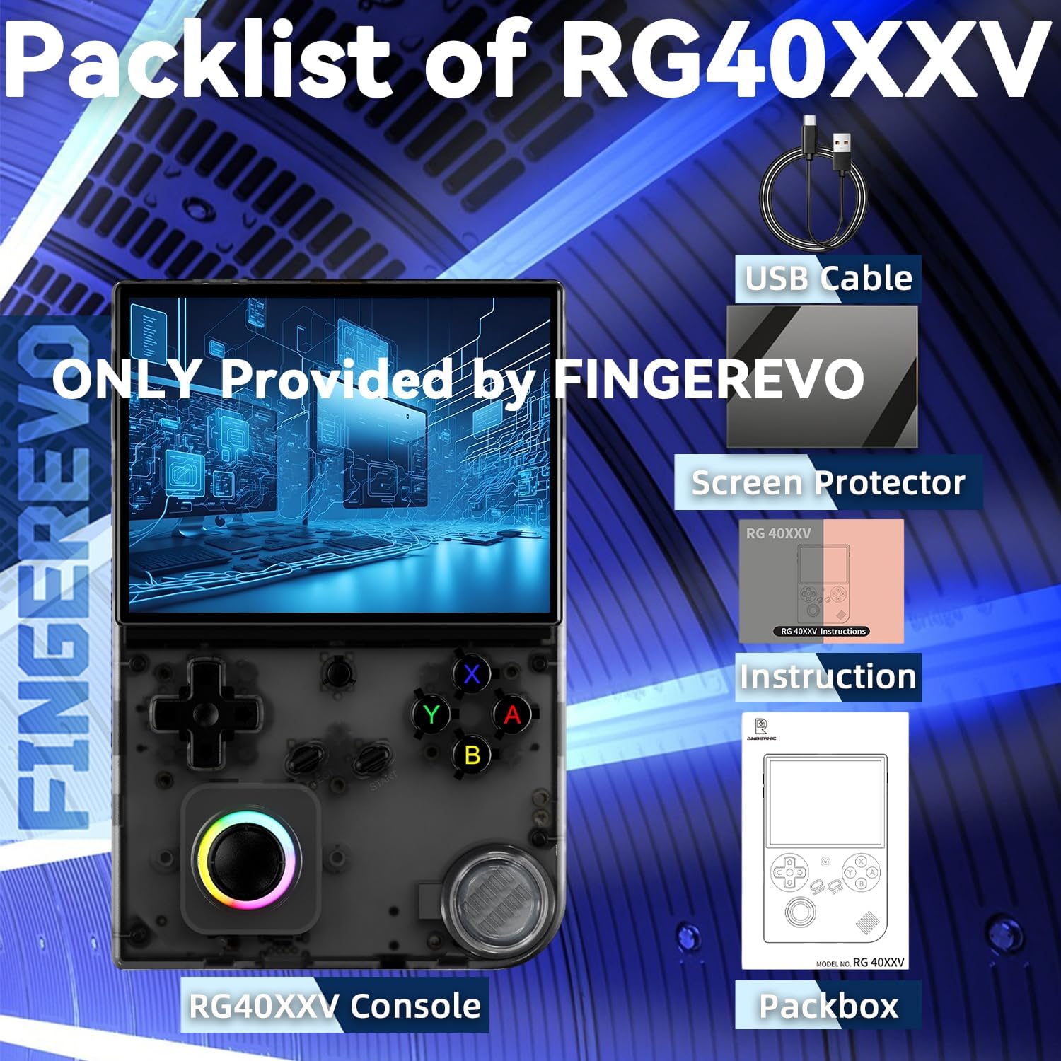 Packlist: 1*RG40XXV Console Black Transparent-64, 1*USB-C Cable, 1*Instruction