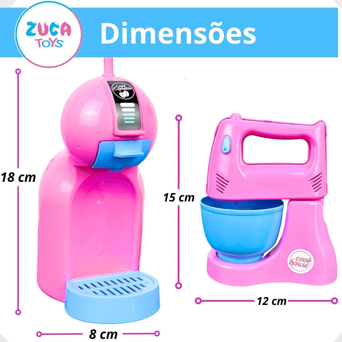 Kit Cozinha Kids Eletrodomésticos + Airfryer + Comidinhas – 24pcs Este kit de eletrodomésticos e comidinhas irá proporcionar horas e horas de diversão com a brincadeira faz de conta. Desperta a imaginação das crianças, uma brincadeira saudável para crianças de todas as idades! O que vamos cozinhar para o jantar hoje? Com a airfryer as receitas ficam muito mais fáceis! Kit Cozinha Infantil Completa: 1 Liquidificador (16cm x 9cm) 1 Cafeteira (18 x 14 x 8 cm) 1 Cápsula de Café 1 Batedeira (15cm x 12cm) 1 Airfryer (13cm x 9cm) 2 Pratinhos 2 Copos 2 Conjuntos de Talheres 1 Kit mini mercado com cestinha e comidinhas Material: Plástico ATENÇÃO: Não recomendável para crianças menores de 3 anos por conter partes pequenas que podem ser engolidas ou aspiradas. Qualquer dúvida, estamos à disposição!