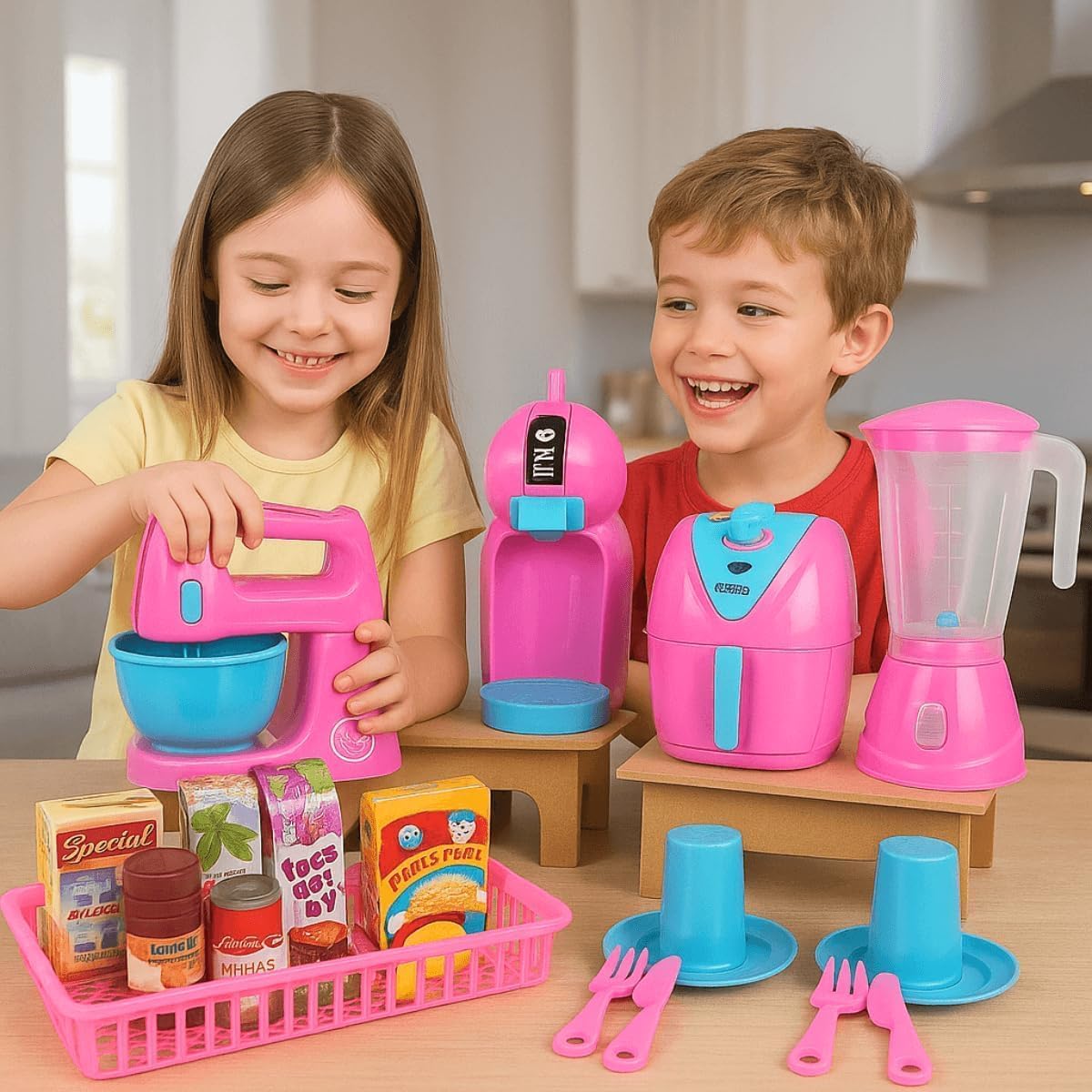 Kit Cozinha Infantil de Brinquedo Eletrodomésticos Comidinhas C/ 25 peças