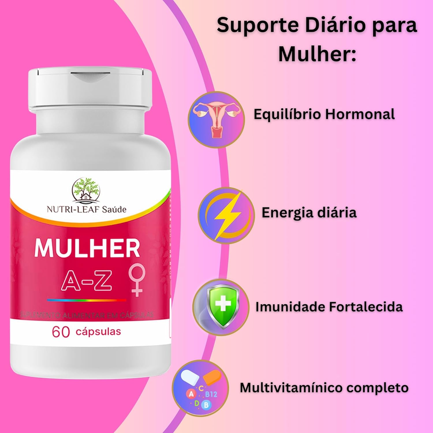 MULHER A Z – vitamina para mulheres, energia, disposição e bem‑estar feminino com vitaminas e nutrientes essenciais, para todas as fases da vida | NUTRI‑LEAF Saúde
