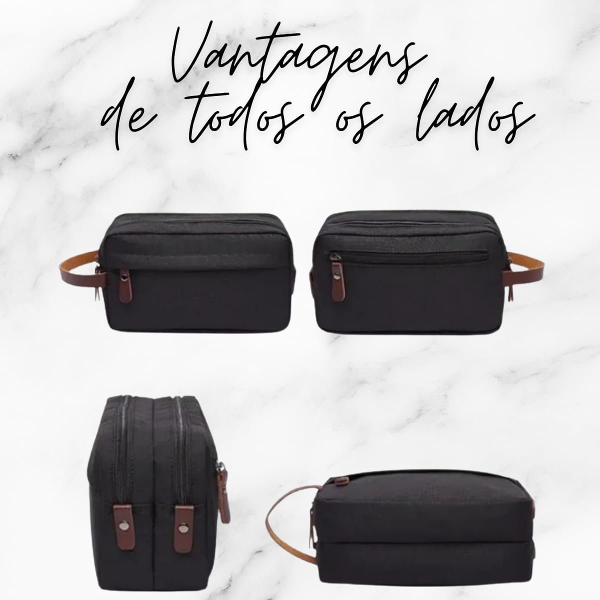 Necessaire Unissex Viagem Trabalho Organizador Impermeavel Essa necessaire de viagem é perfeito para organizar seus itens essenciais com estilo e praticidade. – Confeccionado em material resistente e impermeável, possui múltiplos compartimentos que facilitam a organização de seus pertences durante viagens ou no dia a dia. – O design unissex é complementado por detalhes em couro sintético marrom, incluindo uma prática alça de mão para fácil transporte. – Com dois compartimentos principais com zíper, oferece amplo espaço para armazenar produtos de higiene pessoal, cosméticos e outros itens necessários. Seu formato retangular compacto é ideal para otimizar espaço em malas ou para uso diário no trabalho. – A construção robusta e os zíperes de qualidade garantem durabilidade e funcionalidade. – Essa necessaire é uma escolha versátil e prática para viajantes e profissionais que valorizam organização e praticidade.