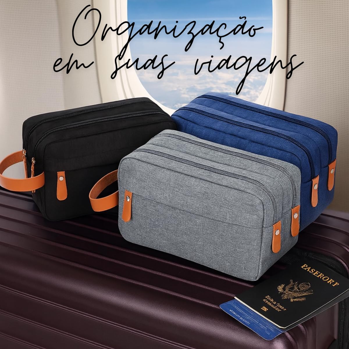 Necessaire Unissex Masculina Bolsa Para Viagem Trabalho Organizador Impermeável 2 Compartimentos Grande 2 Bolsos Organizadores (Cinza)