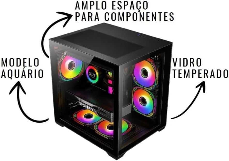 ✅GABINETE COM ILUMINAÇÃO: O gabinete tem iluminação RGB nos fans da frente e lado de vidro temperado, dando um visual gamer elegante ao PC.