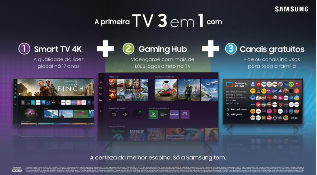 Samsung Smart TV 55 polegadas UHD 4K 55CU7700 2023, Processador Crystal 4K, Gaming Hub, Visual Livre de Cabos, Tela sem limites, Alexa built in, Controle Único