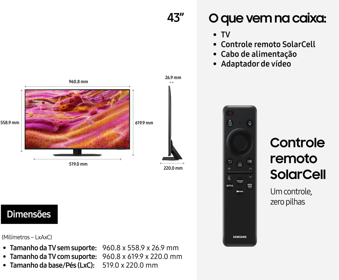 Cada detalhe ganha vida com o poder do Mini LED. Mini LEDs Pro Samsung. A imagem ganha mais detalhes com 40 Mini LEDs que substituem cada LED convencional, entregando brilho mais intenso, contraste profundo e cores mais vibrantes.