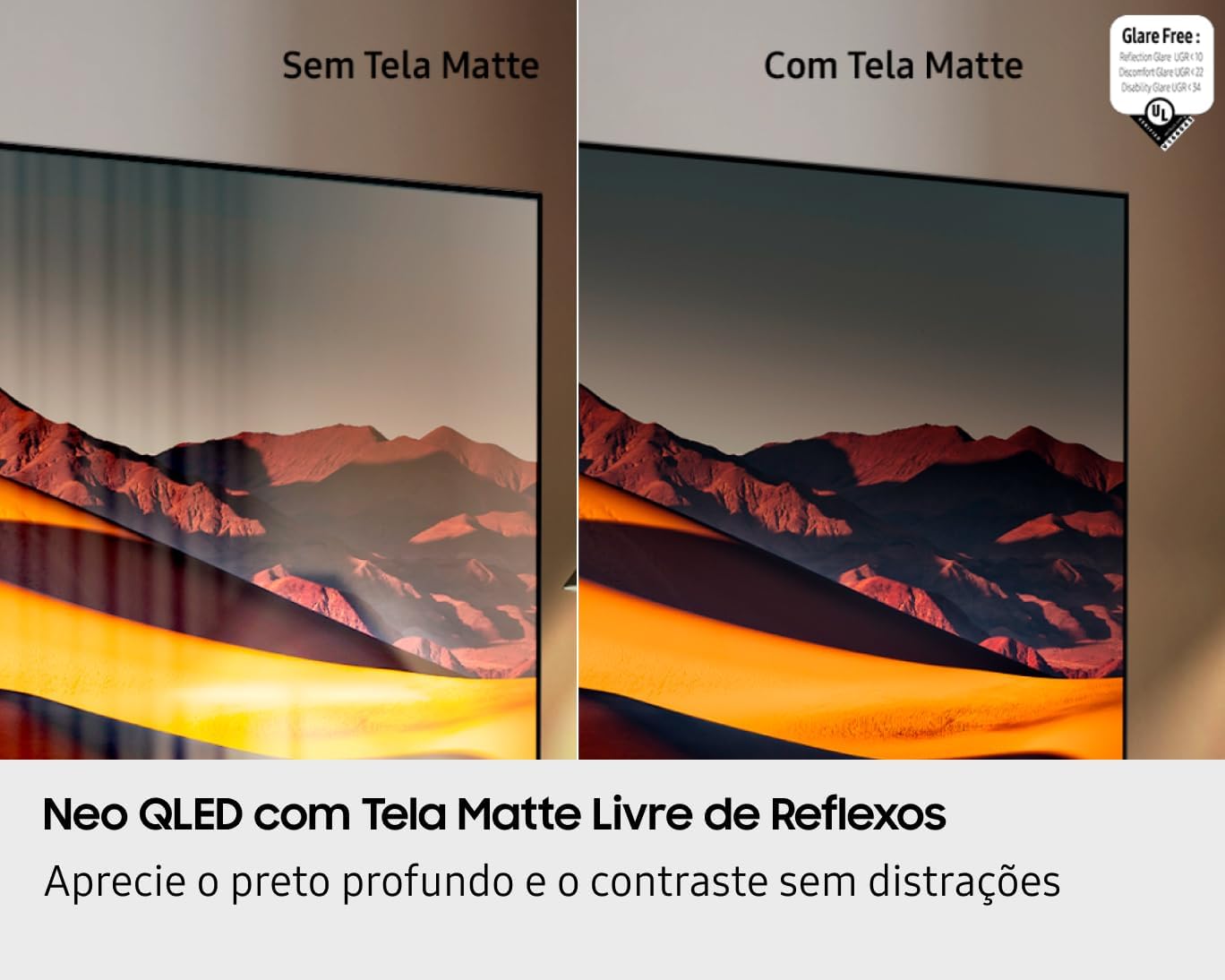 Aprecie o preto profundo e o contraste sem distrações. Neo QLED com Tela Matte livre de reflexos. Não importa a luz do ambiente: a tecnologia Matte, para redução de reflexos, traz contraste bem definido e preto intenso, proporcionando uma imersão completa.