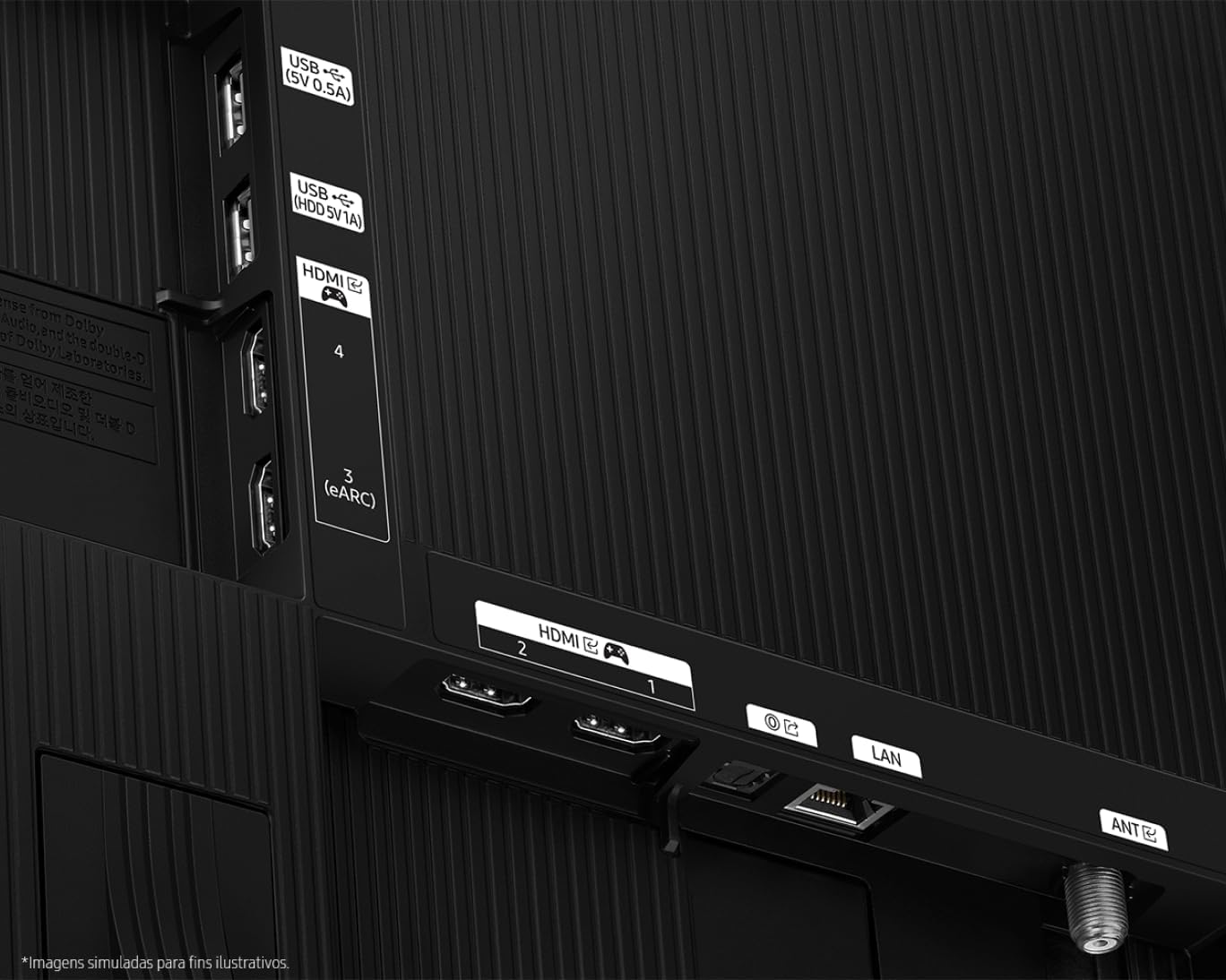 Experiência de som imersiva e otimizada. Dolby Atmos com Som em Movimento, Sincronia Sonora e Controle de Som Adaptativo Pro. Fique imerso no áudio dos seus conteúdos, como se estivesse dentro da cena, por meio do Dolby Atmos. A TV analisa automaticamente os tipos de cena e calibra o som para uma experiência sonora equilibrada. Ao utilizar a TV com uma Soundbar Samsung, o som de ambos funcionará em sincronia: o Q-Symphony.