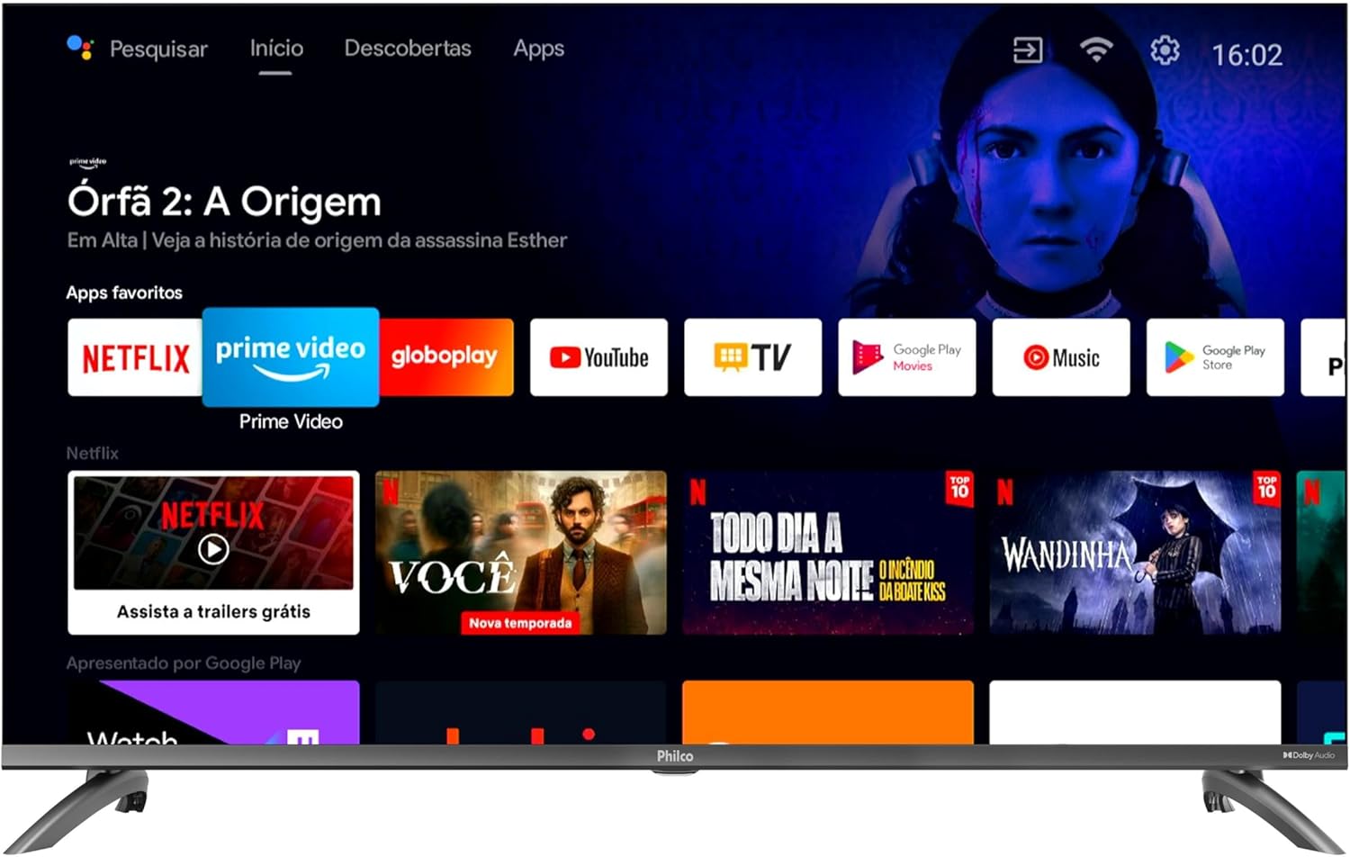 A Smart TV 40” Philco PTV40M9GACGB é a porta de entrada para um mundo de entretenimento, com a melhor qualidade de imagem e som na sua casa! Com a tecnologia Android TV, você tem acesso a um universo de aplicativos, como Netflix, YouTube e Globo Play, na palma da sua mão. Desfrute de seus filmes, séries e programas favoritos com a maior comodidade. E se você é um gamer, prepare-se para levar seus jogos para outro nível, com gráficos incríveis e uma jogabilidade fluida. O processador Quad Core garante que tudo funcione de maneira rápida e eficiente, sem travamentos. Navegue pelos aplicativos, alterne entre as entradas e acesse seus conteúdos favoritos com a maior agilidade. A experiência visual é simplesmente incrível. A tela LED de 40 polegadas proporciona cores vibrantes e um contraste incrível, fazendo você se sentir dentro da ação. E para completar, a tecnologia Dolby Audio entrega um som envolvente e realista, como se você estivesse em uma sala de cinema. A Smart TV 40 polegadas Philco PTV40M9GACGB é intuitiva e fácil de usar. Além disso, sua interface é moderna e elegante, se integrando perfeitamente à sua decoração. Não perca mais tempo! A Smart TV 40” Philco é a escolha perfeita para quem busca tecnologia, qualidade e entretenimento.cial do seu dispositivo móvel espelhado em sua Fast Smart Android TV. Google Play : Um mundo de entretenimento com os principais aplicativos de streaming (Netflix, Globoplay, Prime Video, etc), jogos e diversas ferramentas para dar mais poder para sua TV. Dolby Audio: Qualidade de som garantida. HDMI . Processador Quad Core .