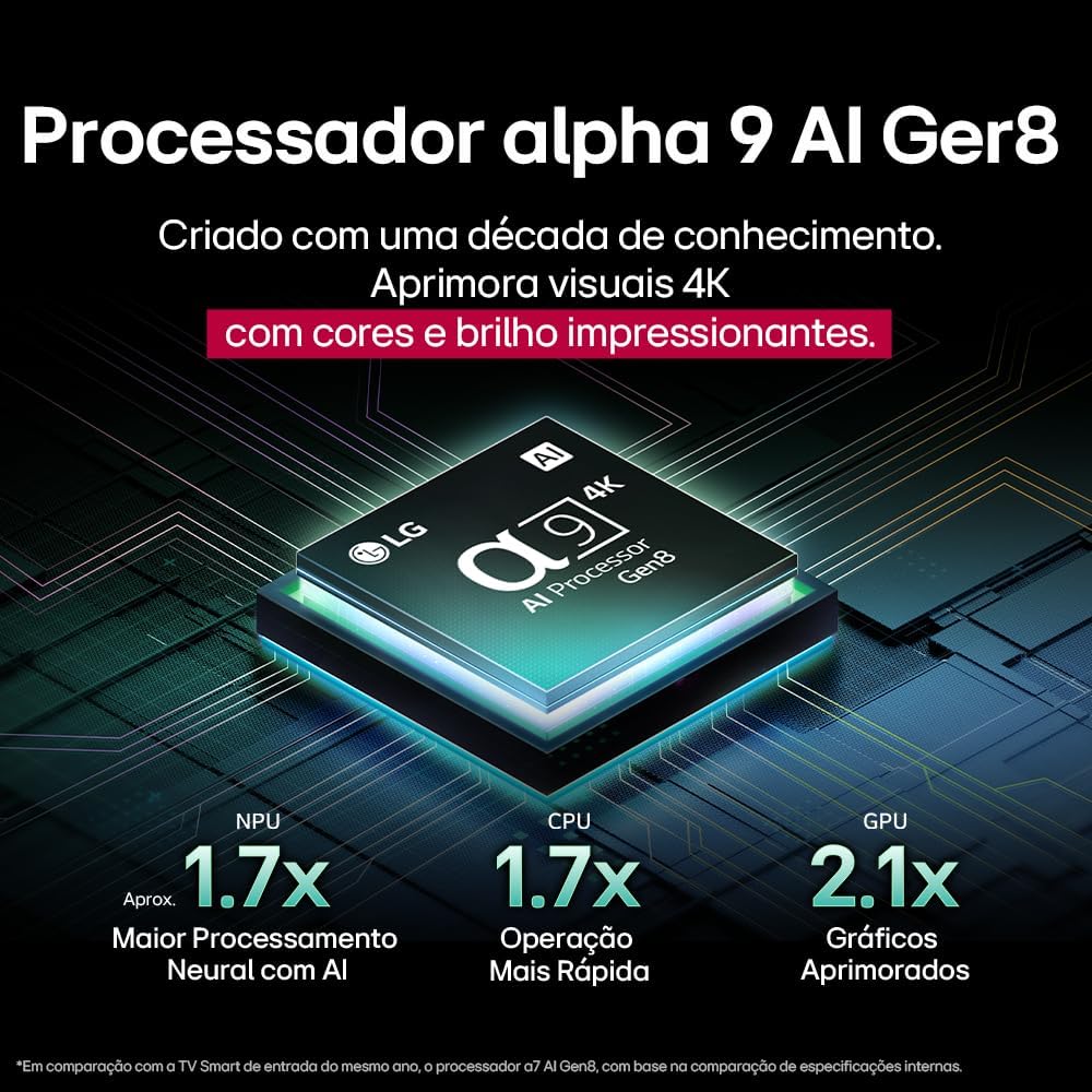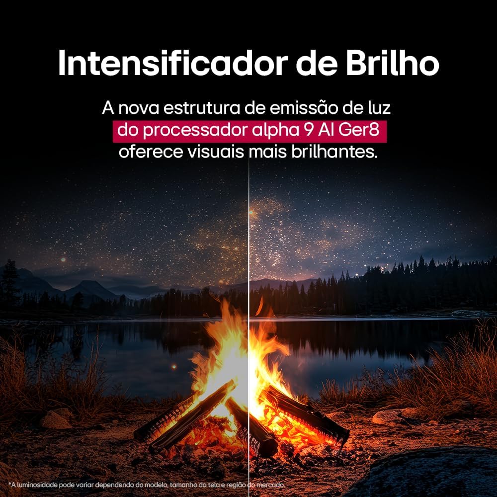 A TV OLED C5 entrega uma experiência visual envolvente com design elegante e desempenho avançado. Com o processador α9 AI Gen8, analisa e ajusta imagem e som em tempo real, aprimorando cada detalhe com inteligência artificial. O Intensificador de Brilho oferece mais intensidade e realce, garantindo cores vibrantes e maior clareza em diferentes condições de iluminação. A tecnologia OLED proporciona o Preto Perfeito, com contraste profundo e fidelidade impressionante, elevando a qualidade de qualquer conteúdo com realismo cinematográfico.