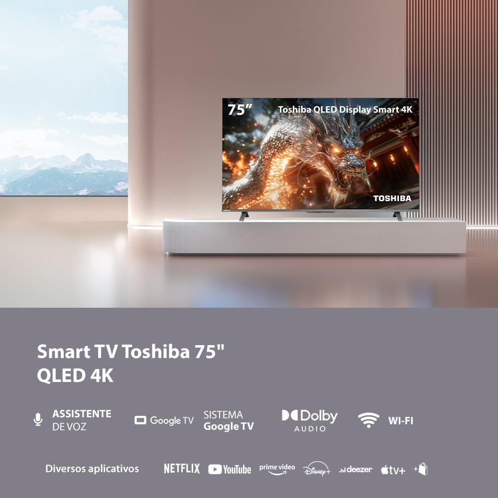 Smart TV QLED 75 4K Toshiba Google TV 4HDMI 2USB Wi-Fi