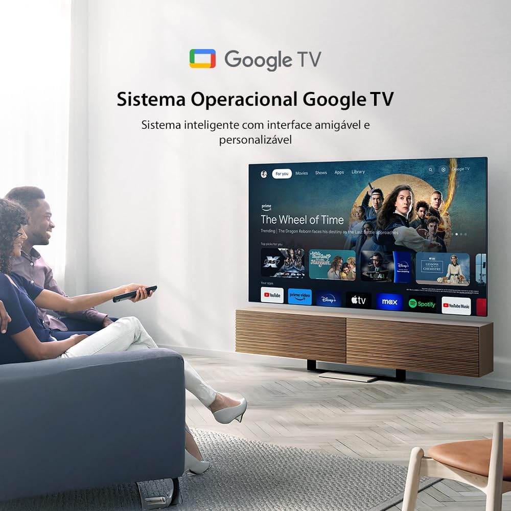 Google TV integrado: Acesso a uma vasta biblioteca de aplicativos e serviços de streaming, tudo na ponta dos dedos.