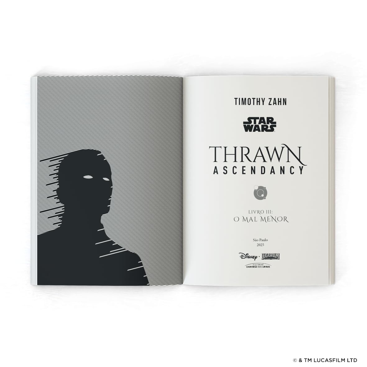 Review: As venturas e desventuras de Thrawn pelas Regiões Desconhecidas da galáxia estão concluídas e com elas, a primeira parte de sua biografia.Esse era o objetivo da ‘Trilogia Ascendancy’: acompanhar os primeiros passos de Thrawn, ainda em sua terra natal, além de desvendar os motivos que o levaram a migrar para as Regiões Conhecidas da galáxia.A segunda parte de sua trajetória já vai ocorrer nas Regiões Conhecidas da galáxia (Espaço Menor). Ele ingressará nas fileiras do exército imperial e sua ascensão é contada na obra “Thrawn”, em volume único.O desfecho dessa impressionante caminhada, Zahn vai relatar em outro monumental trio de livros (‘Trilogia Thrawn’), onde ele dá continuidade aos eventos de ‘O Retorno de Jedi”. Para muitos é uma sequência melhor que aquela trazida pelos filmes.Voltando à ‘Trilogia Ascendancy’, não tenho receio em afirmar que se trata de uma obra de peso. Zahn mergulha nas Regiões Desconhecidas da galáxia e literalmente cria um novo mundo, sugestivamente intitulado de “O Caos”, berço do Império Chiss, lar de Thrawn e dos demais ‘pele azuis’.A cuidadosa construção de mundo, onde Zahn nos presenteia com um cenário extremamente elaborado já valeria a leitura. O Caos é fascinante e a Ascendência Chiss é ainda mais.Nesse último livro, Zahn continua empilhando novos tijolos, pois seu universo vastíssimo está em permanente expansão.Entretanto, após a leitura dos volumes 1 e 2, o complexo Império Chiss também se torna nosso lar. Tornamo-nos ‘pele azuis’, sentindo uma gratificante intimidade com esse mundo cheio de intrigas, estruturado em bases militares e fortes laços familiares.Uma vez que O Caos, em sua maior parte, já nos foi apresentado e considerando que a trama também já foi cuidadosamente preparada para o ‘gran finale’, é chegada a hora de tomar difíceis decisões.O livro 3 é seguramente o melhor em termos de desenvolvimento dos personagens. A lealdade nas mais variadas perspectivas é abordada com imensa sensibilidade, de forma consistente e profunda: agir conforme as ordens ou conforme sua consciência, defender o sangue (a família) ou o bem maior (A Ascendência Chiss como um todo), morrer com honra ou viver sem ela…Os dilemas morais trazidos para o centro dos acontecimentos fazem a história crescer não apenas em termos de valorização dos personagens como, especialmente, em densidade emocional e em conteúdo.Nesse volume final creio que há menos batalhas estelares (mas, em compensação, presenciaremos uma batalha verdadeiramente ÉPICA, que vale mais do que mil pequenas escaramuças). E essa menor quantidade de mísseis lançados ou de fogo laser disparado não torna o ritmo de leitura menos empolgante.Na verdade, esse terceiro livro traz o enredo mais encorpado da trilogia, onde o debate sobre ‘o certo e o errado’ é objeto de intrigantes reflexões. Muitos personagens (não apenas Thrawn) exercem papeis cruciais e ganham nosso respeito e admiração, pelo peso das decisões que terão de tomar.Esse livro 3 é daqueles que você inevitavelmente se põe nas situações apresentadas e assume a identidade do personagem, se perguntado se agiria da mesma forma, se teria tal ousadia, por mais que a causa seja nobre. São diálogos inspiradores e tocantes.E a cereja do bolo fica por conta da FORÇA. Se você achava que ela era de uso exclusivo das Ordens Jedi e Sith, precisa mudar seus conceitos. Uma análise inovadora sobre as potencialidades da Força é desenvolvida de maneira engenhosa.Desfecho em nível elevadíssimo para uma trilogia que merece todo nosso respeito. Leia!