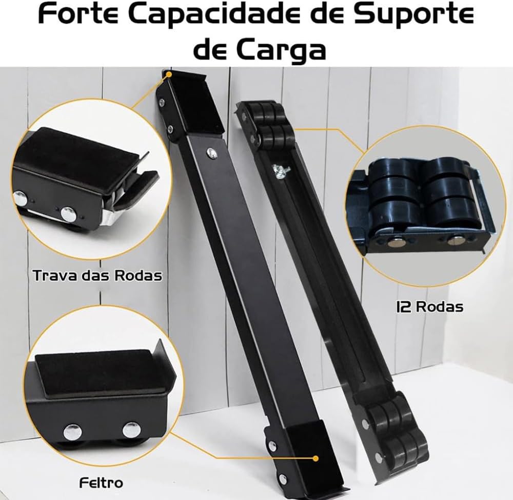 Deixe de lado o esforço ao deslocar seus aparelhos domésticos como fogão, refrigerador ou lavadora. Foi criado um suporte especial para móveis e aparelhos domésticos para facilitar seu dia a dia, removendo a necessidade de esforços excessivos.