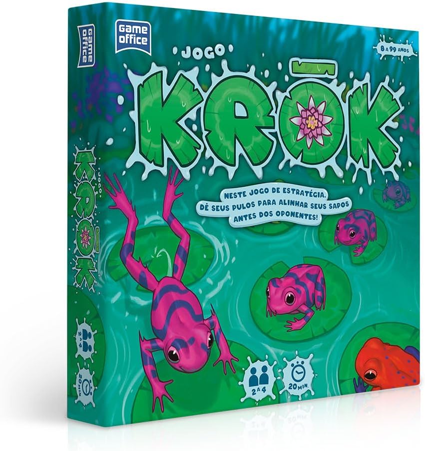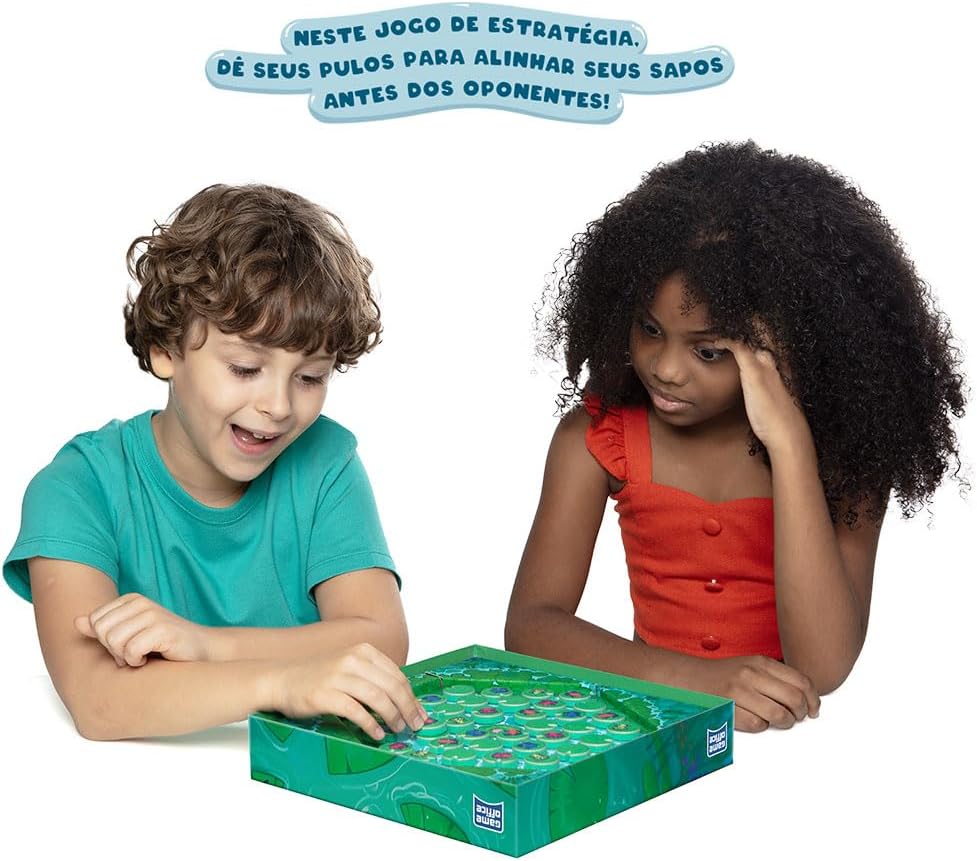 Com muita estratégia, os jogadores deverão mover suas rãs que estão espalhadas pela lagoa a fim de alinhar 4 peças de sua cor antes dos outros jogadores.