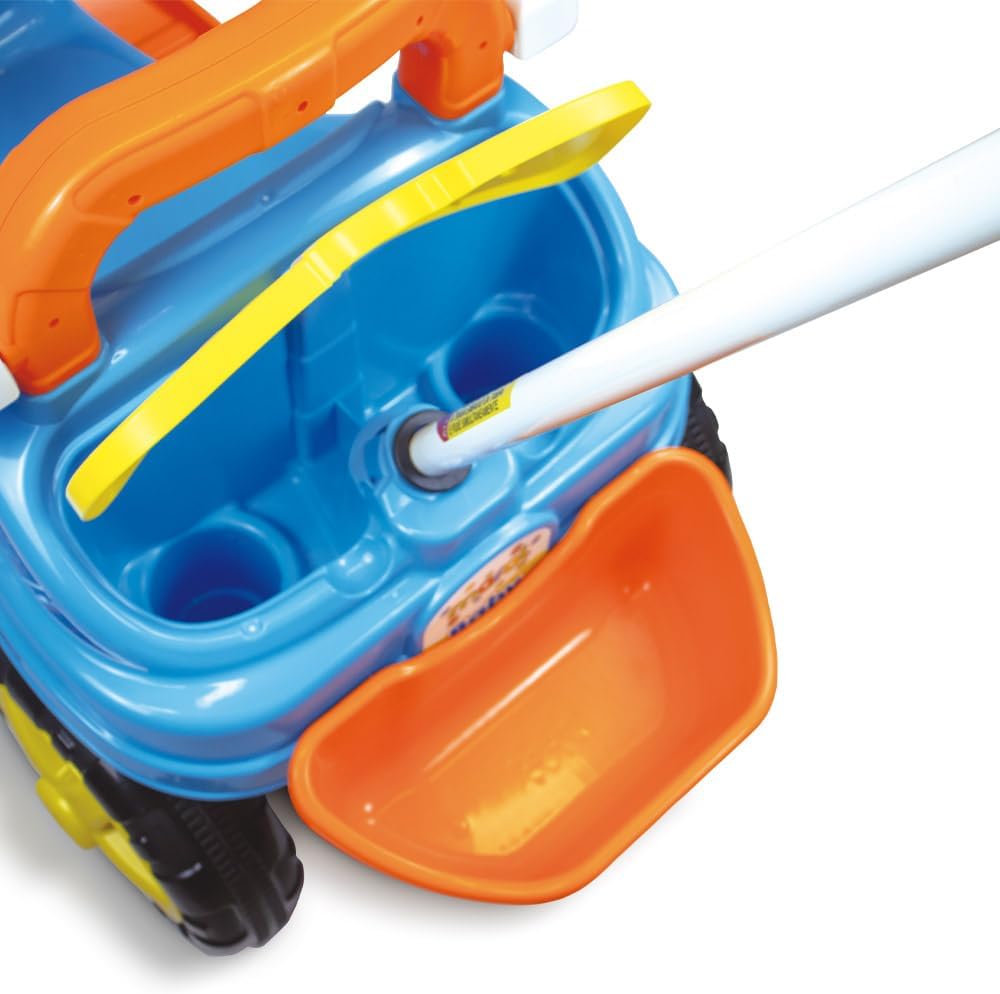 Um triciclo para passear, pedalar e se divertir muito! O Triciclo Baby City possui um design moderno e cores vibrantes. Multifuncional, pode ser usado nas funções Passear e Pedalar. Na função Passear, o adulto tem controle na direção do triciclo, através da haste-guia para empurrar e manobrar. A haste-guia é metálica e fácil de retirar, tem um gancho para bolsa ou sacola de até 1,5 kg. O anel de proteção tem atividades como: uma chave giratória e um câmbio que faz barulhinho. E acompanha uma peça adicional para dar mais segurança às crianças menores. Guidão com punhos emborrachados e buzina com som divertido! Os apoios de pés são removíveis. Com 2 porta objetos, com e sem tampa, para transportar o que quiser… Na função Pedalar, retirando os acessórios (haste-guia, anel de proteção e apoio de pés), a criança pode pedalar e brincar sozinha…estimulando a coordenação motora e o senso de direção. Suporta até 30 kg.