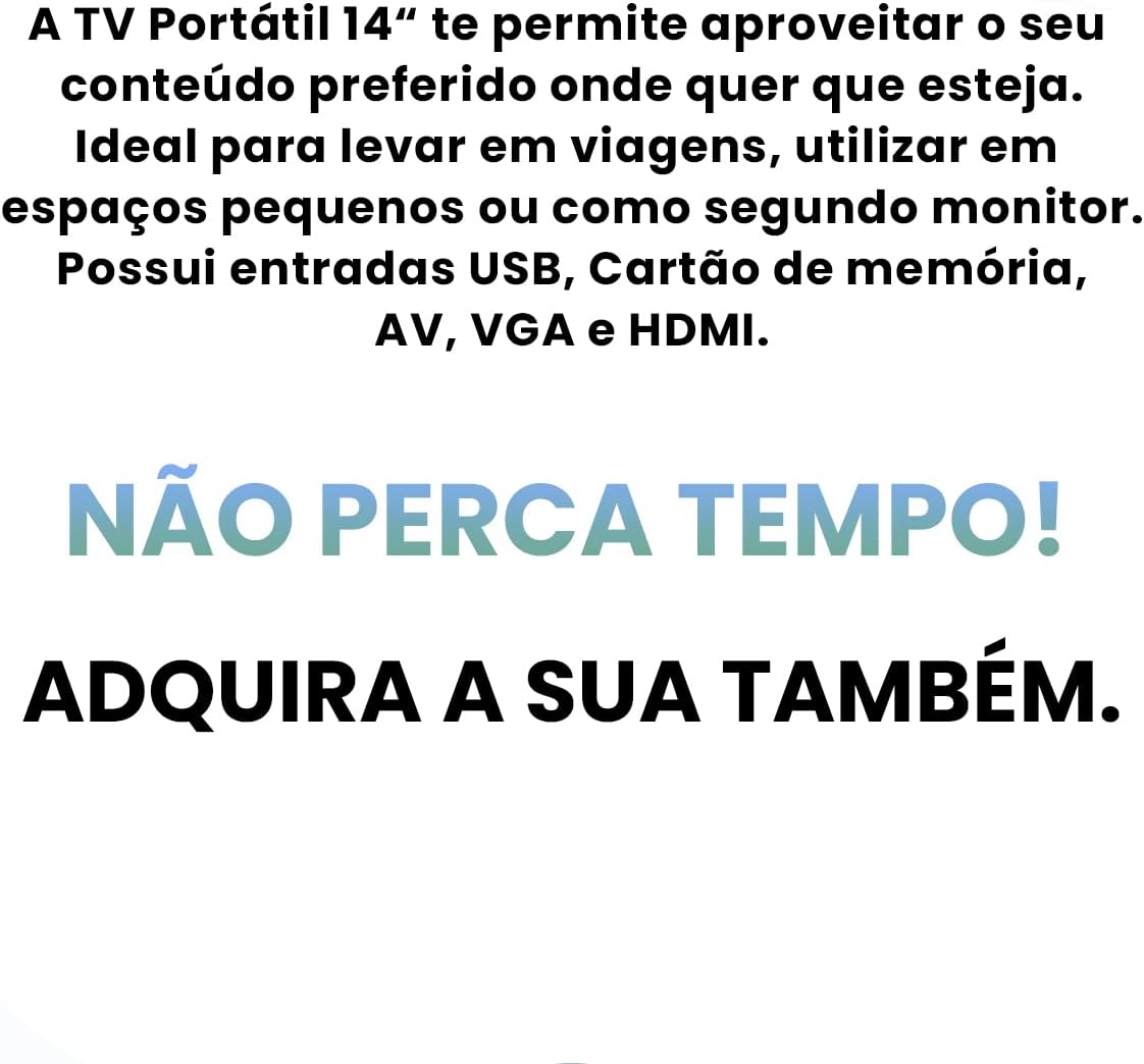 Portabilidade: Devido ao seu tamanho compacto, a TV é facilmente transportável, sendo uma excelente opção para viagens ou para uso em diferentes ambientes da casa.